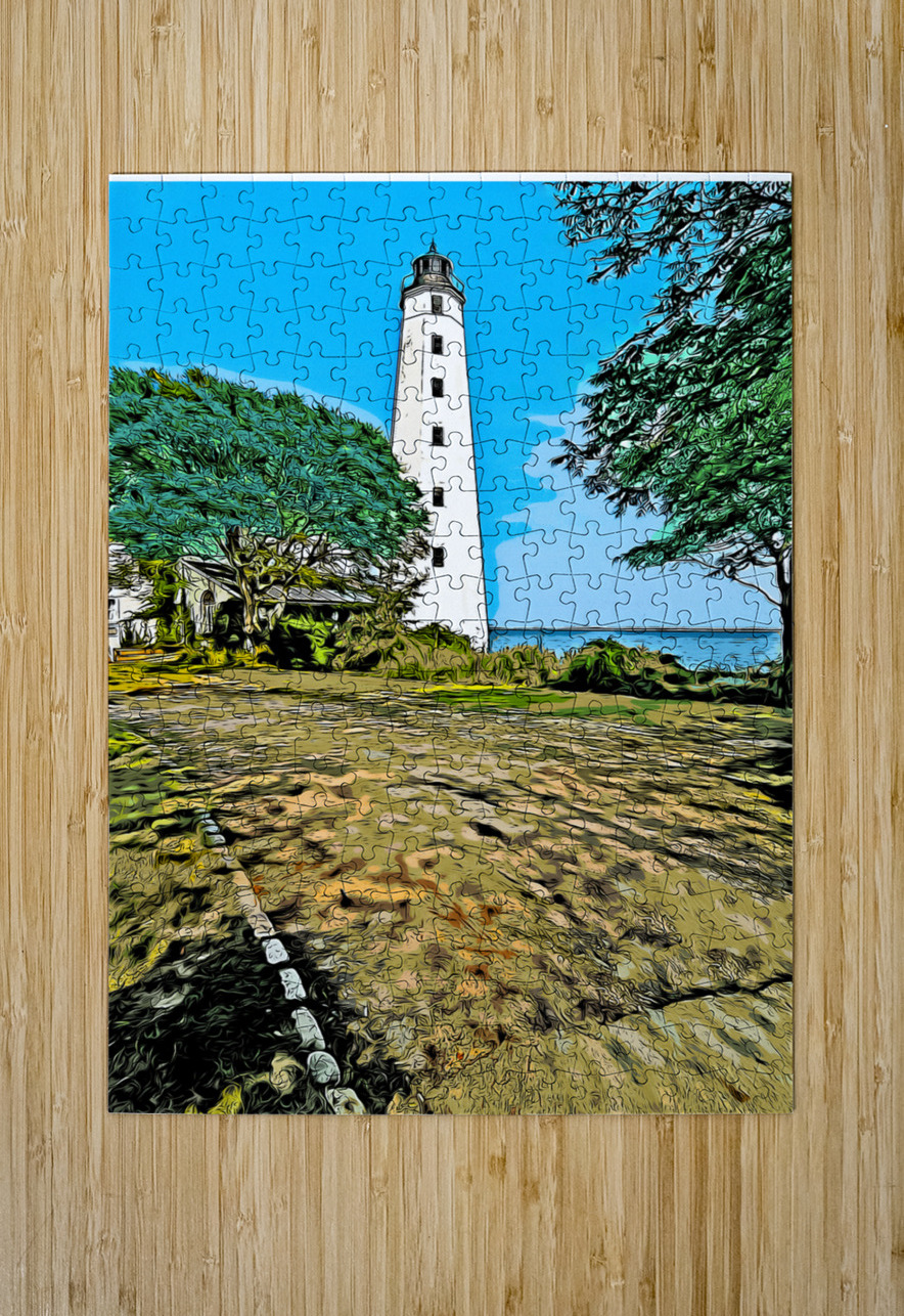 Rustic London Harbor Lighthouse Tower in Connecticut - Illus. Allan Wood Puzzle