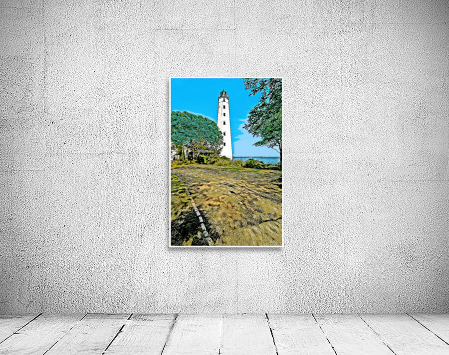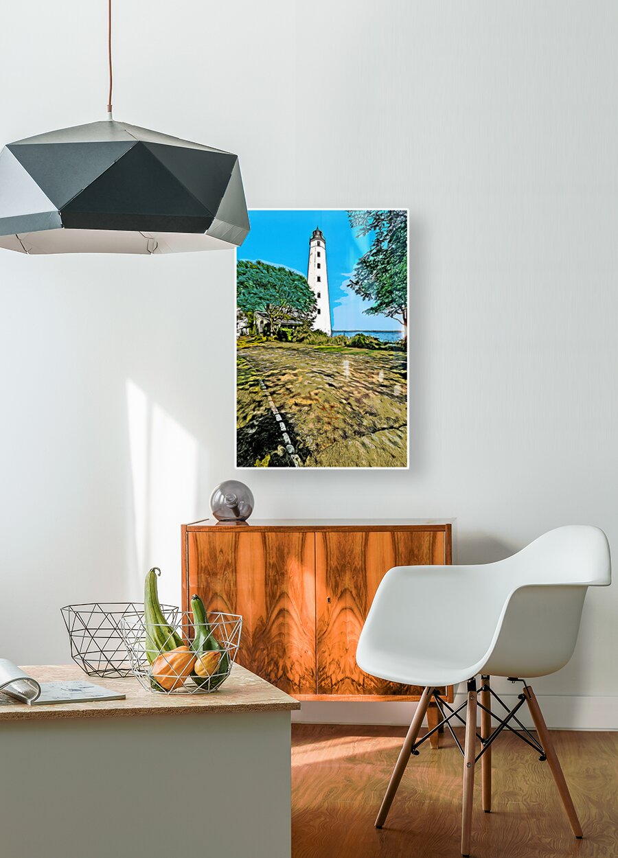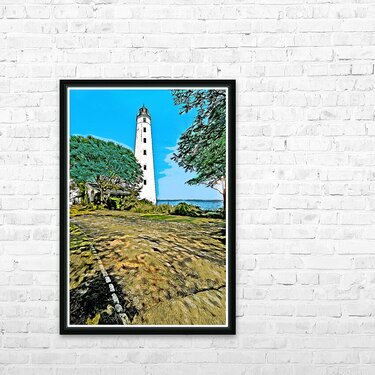 Rustic London Harbor Lighthouse Tower in Connecticut - Illus. Wall Decor Frame