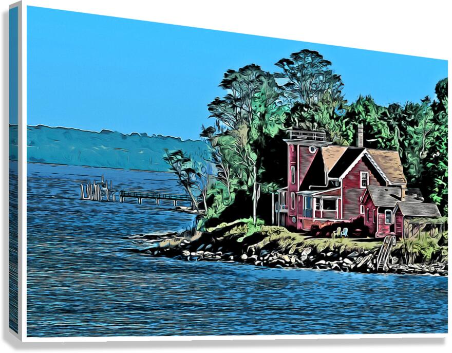 NORTH CONANICUT ISLAND LIGHTHOUSE IN RHODE ISLAND - ILLUS. ALLAN WOOD  Canvas Print