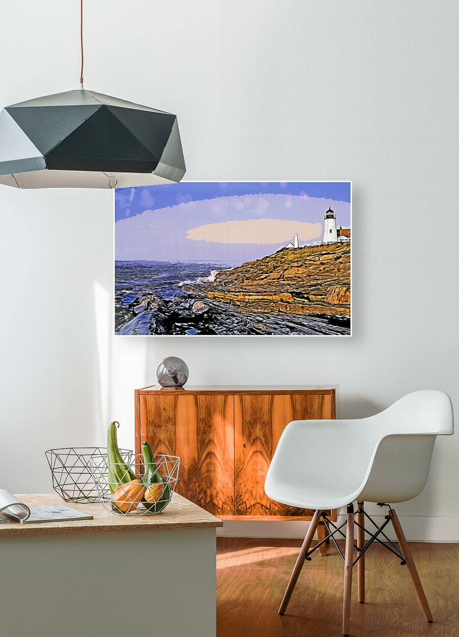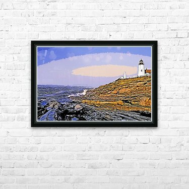 Early Dawn Surrounds Pemaquid Point Lighthouse Over Rocky Cliffs in Maine - Illus. Picture Frame Printing