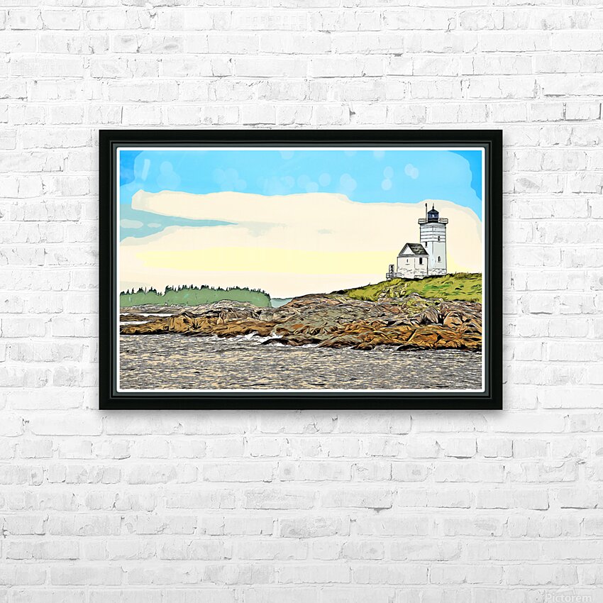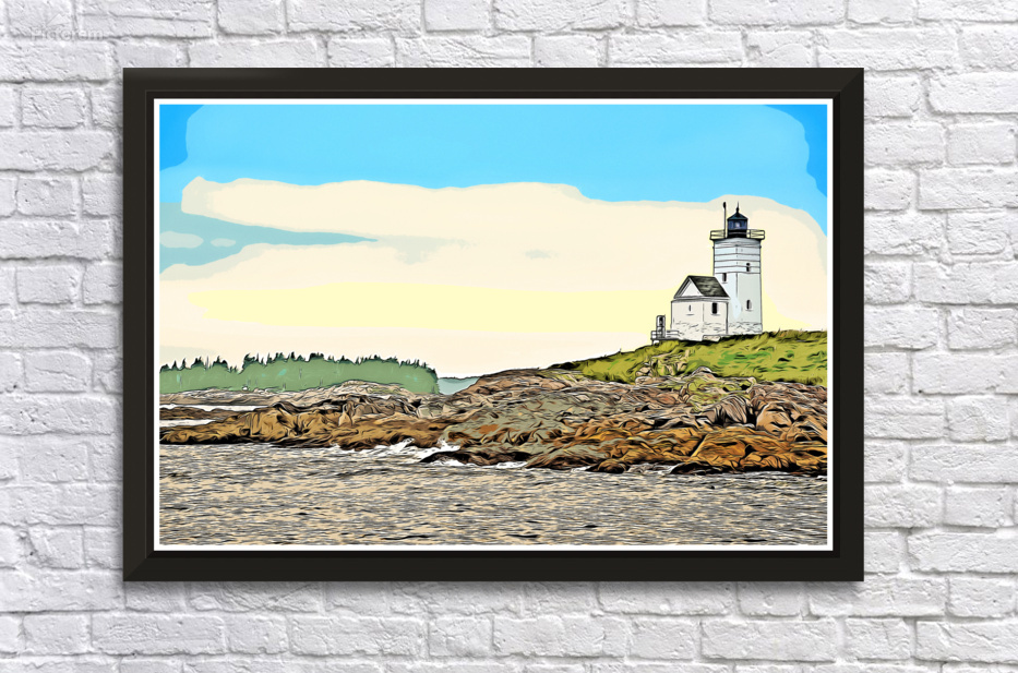Two Bush Island Light Tower Among Rocky Islands in Midcoast Maine - Illus. Wall Decor Frame