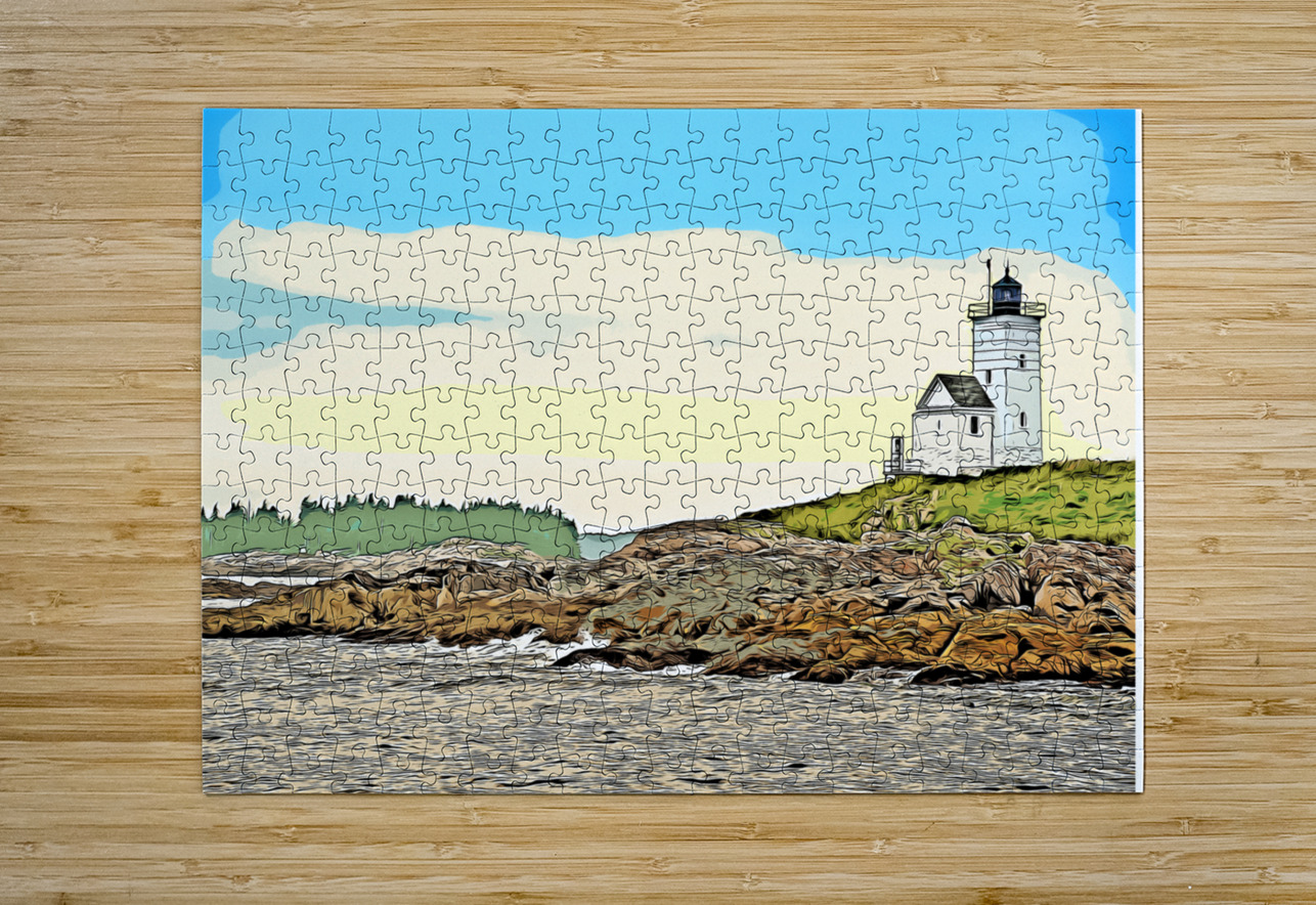 Two Bush Island Light Tower Among Rocky Islands in Midcoast Maine - Illus. Allan Wood Puzzle