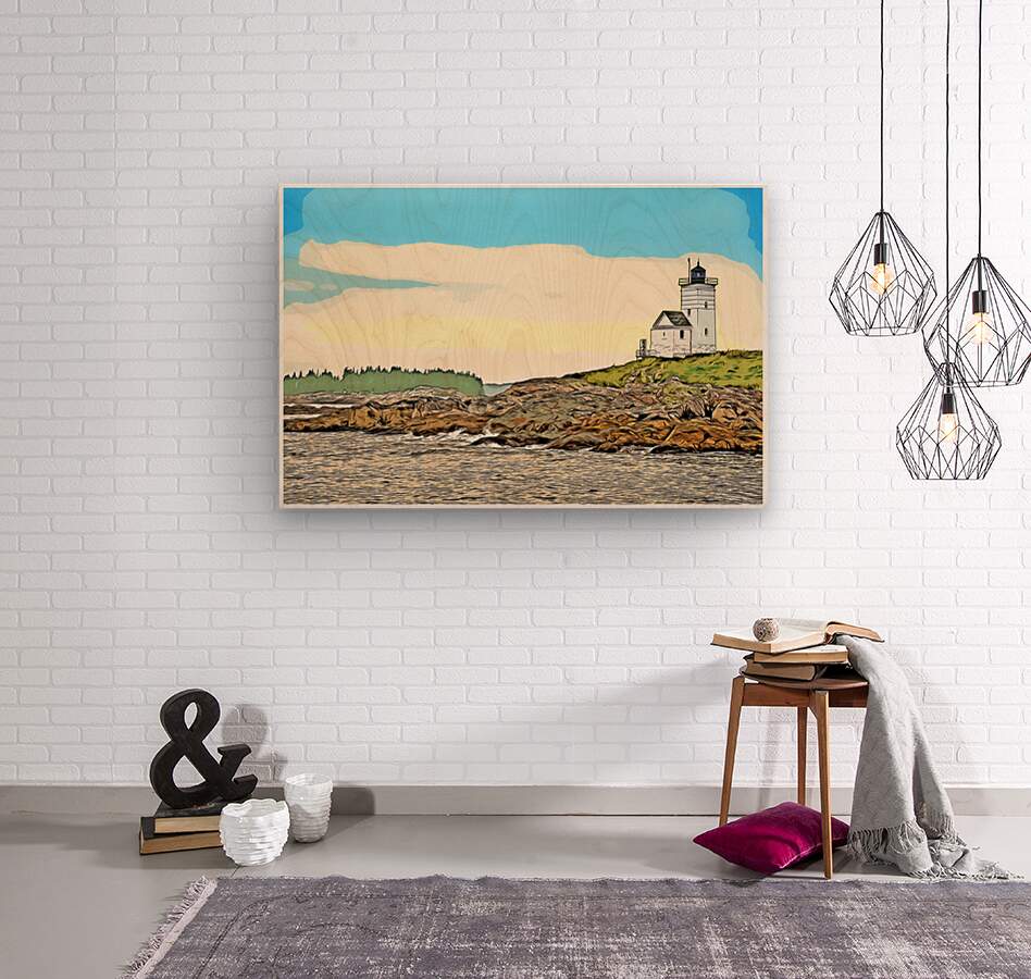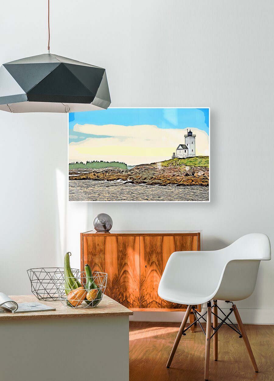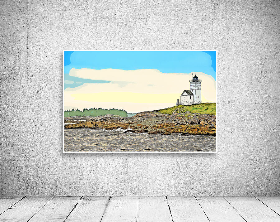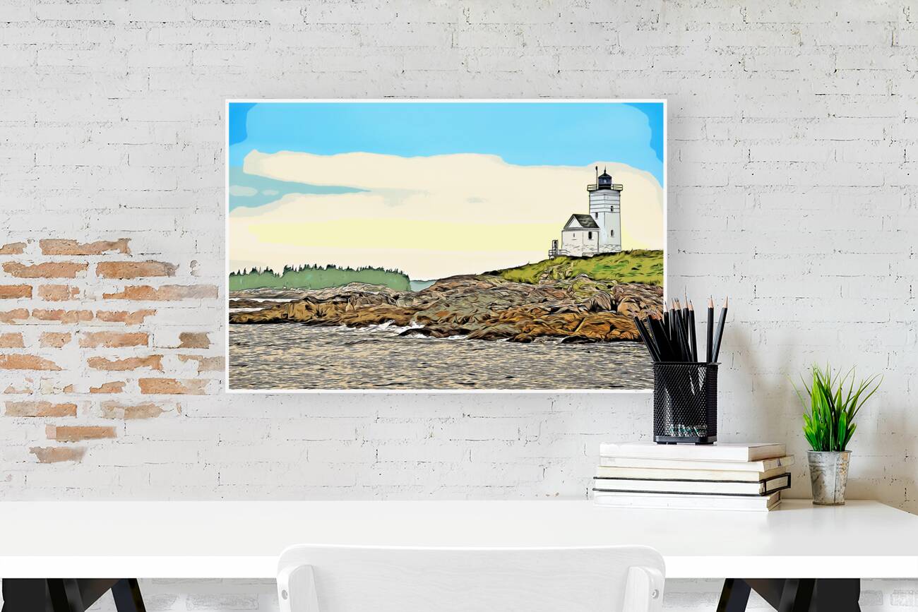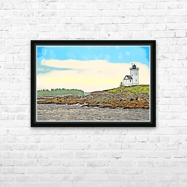 Get this artwork "Two Bush Island Light Tower Among Rocky Islands in Midcoast Maine - Illus." in a framed print.