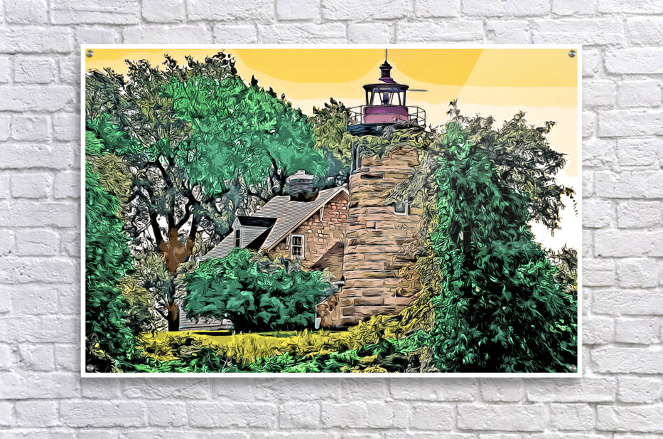 Digital illustrative painting of Windmill Point Lighthouse in early morning in Vermont. It is Vermont's northernmost light on Lake Champlain.