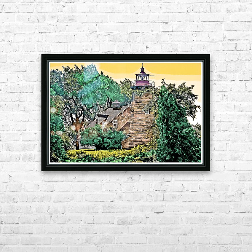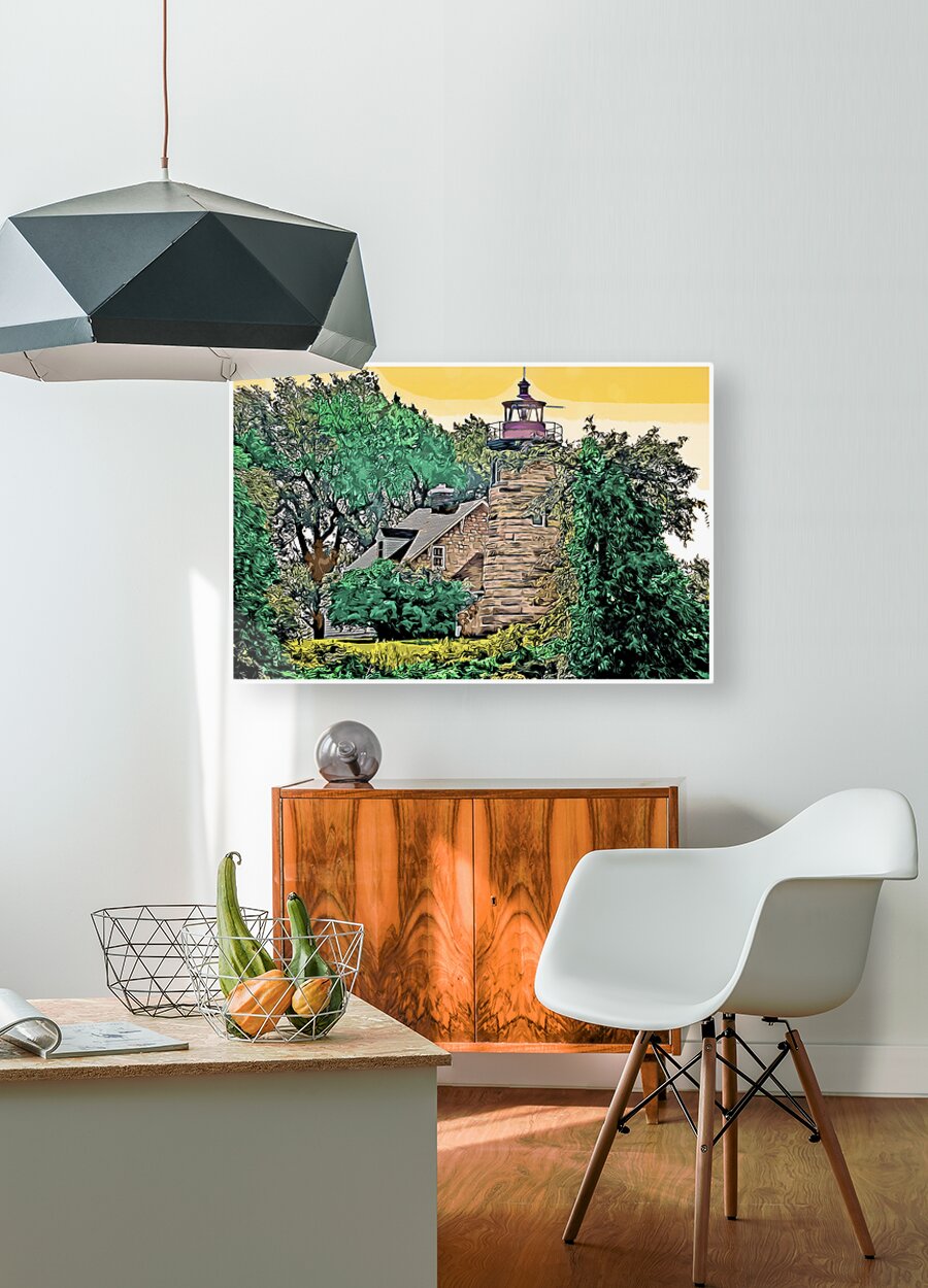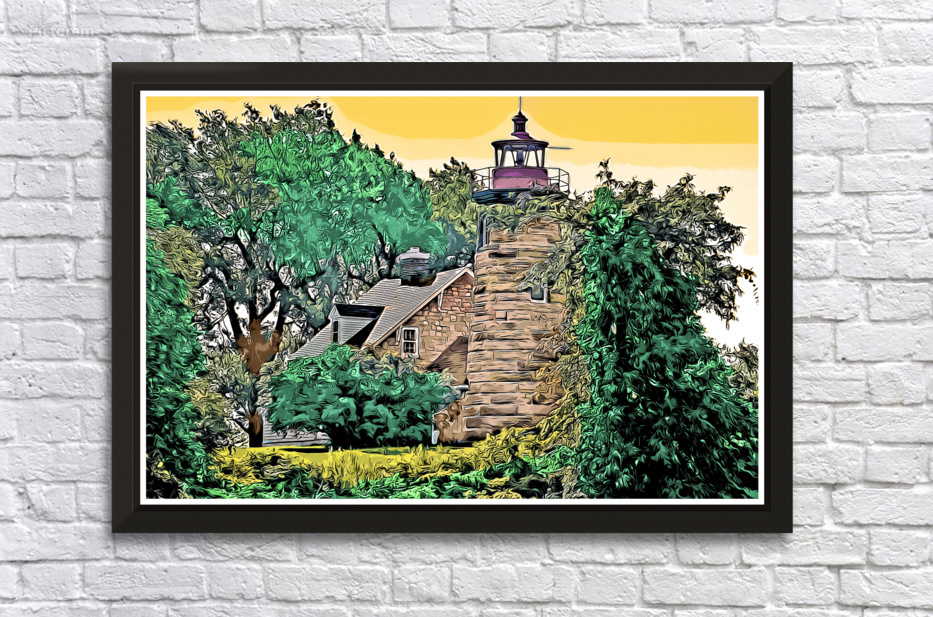Windmill Point Lighthouse in Early Morning in Vermont - Illus. Wall Decor Frame