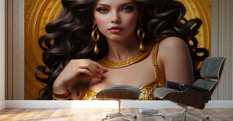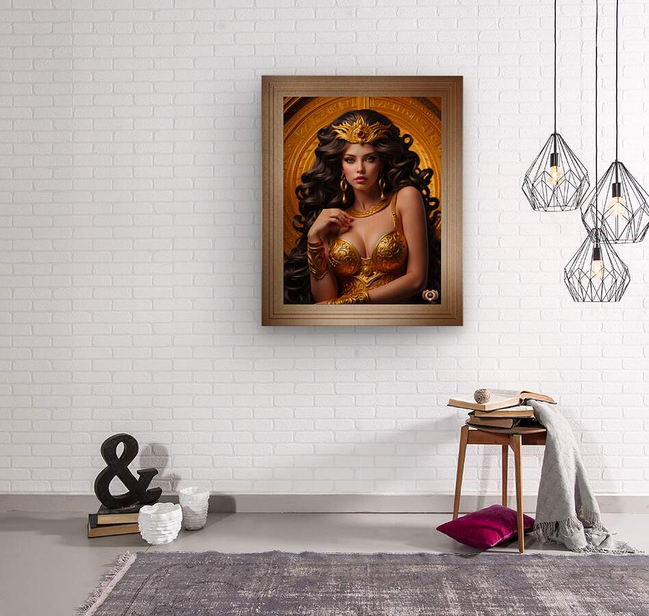 Queen Of The Golden Wings Captivating AI Concept Art Portrait by Xzendor7  Wood print