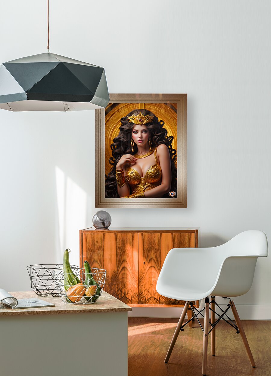 Get this artwork "Queen Of The Golden Wings Captivating AI Concept Art Portrait by Xzendor7" in a framed print.