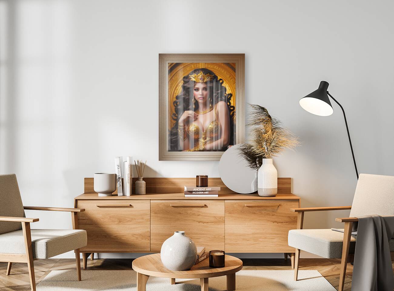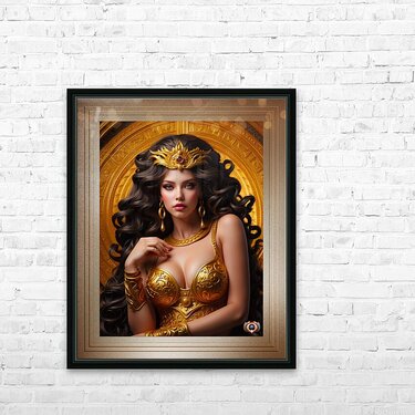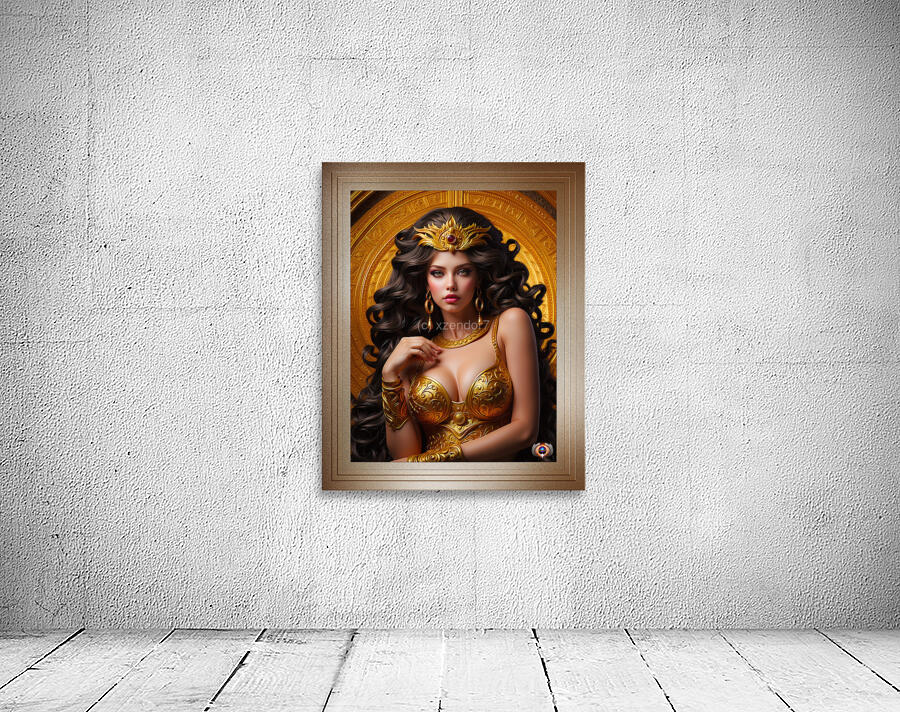 Queen Of The Golden Wings Captivating AI Concept Art Portrait by Xzendor7 Wall Decor Frame