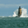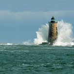Giant wave looking like a perfect crown covers the stone tower of Whaleback Lighthouse in southern Maine during an astronomically high tide.