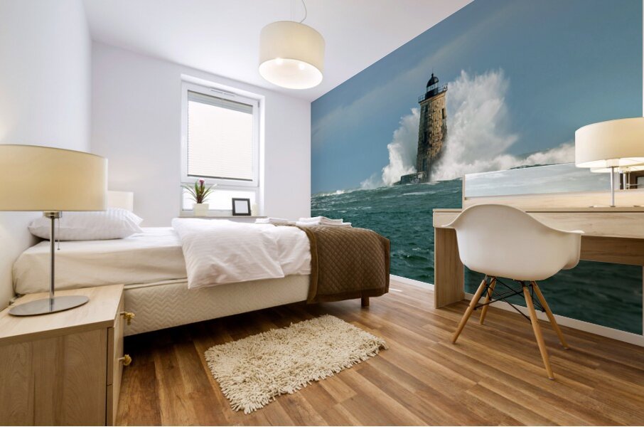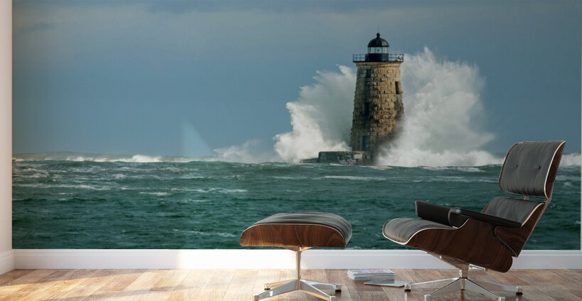 ABOUT THIS ARTWORK: PERFECT CROWN WAVE SURROUNDS WHALEBACK LIGHTHOUSE TOWER IN MAINE