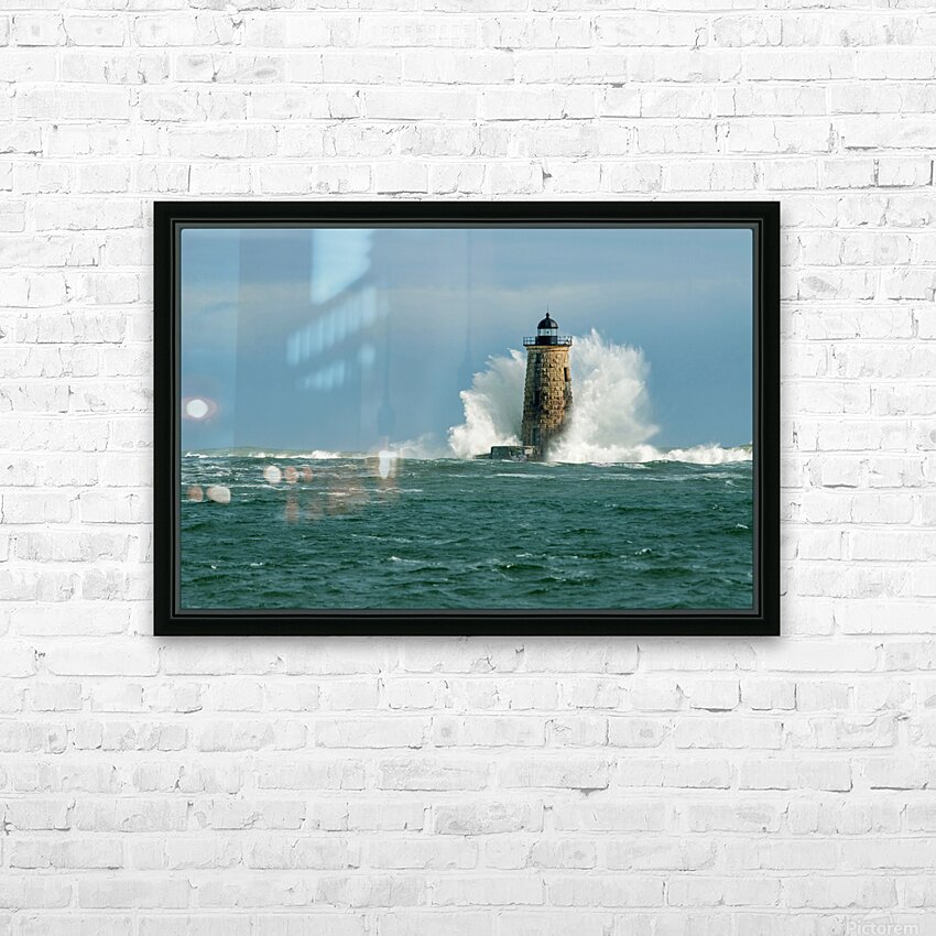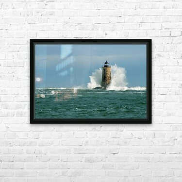 Perfect Crown Wave Surrounds Whaleback Lighthouse Tower in Maine Picture Frame Printing