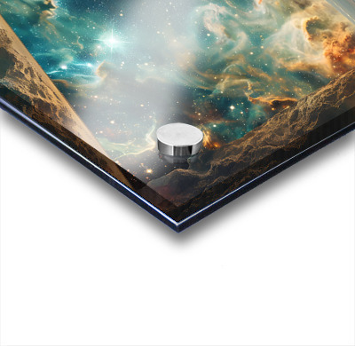 Printed to the edge - Ready to hang - provided with 4 premium polished aluminum stand off ( wall screws and mounting hardware provided )