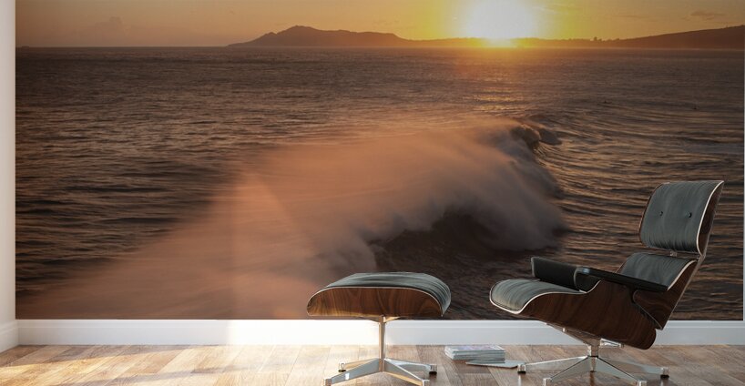 As the setting sun casts its golden glow, a south swell crashes along the lava ledge with Diamond Head in the distance. The raw power and beauty of th...[+]