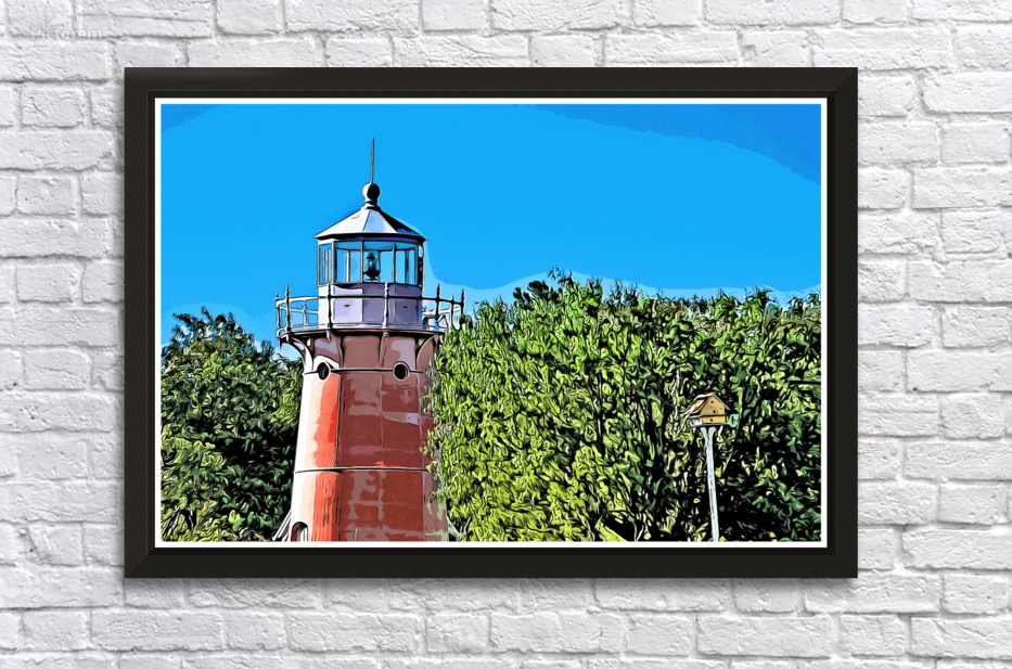 Pink Isle La Motte Lighthouse Tower in Lake Champlain in Vermont - Illus. Picture Frame Printing