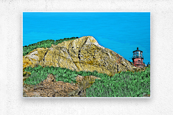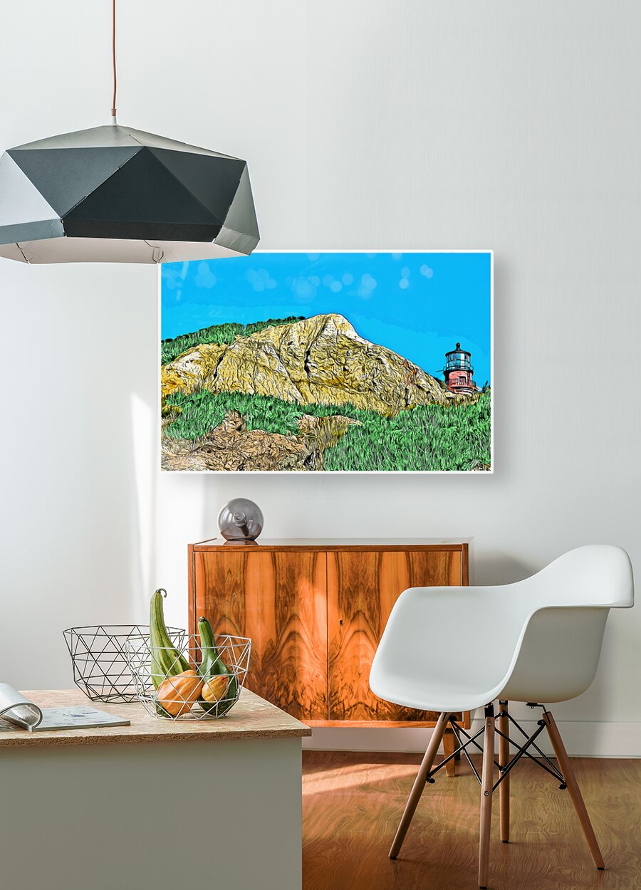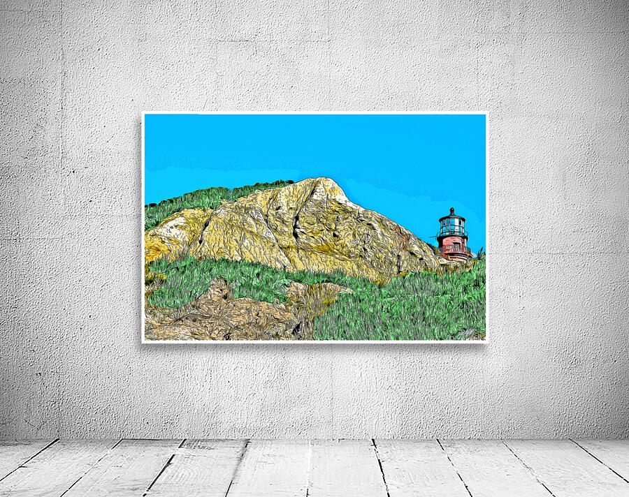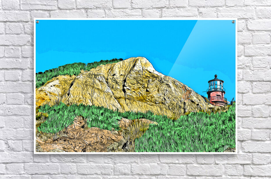 Digital illustrative painting of Gay Head Lighthouse, also referred to as Aqinnah Light, sitting over sand cliffs on the island of Martha's Viney...[+]