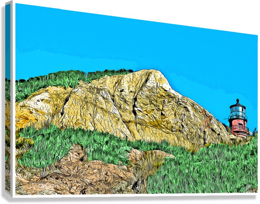 GAY HEAD LIGHTHOUSE OVER CLIFFS ON MARTHAS VINEYARD IN MASSACHUSETTS - ILLUS. ALLAN WOOD  Canvas Print