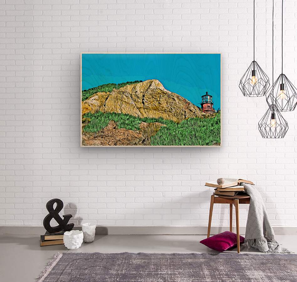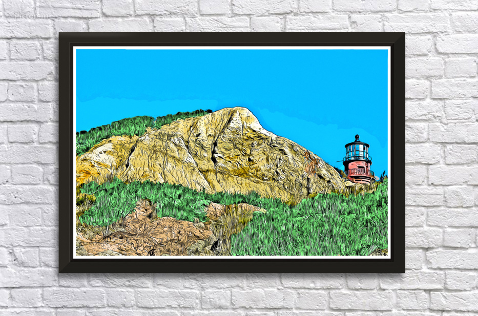 Gay Head Lighthouse Over Cliffs on Marthas Vineyard in Massachusetts - Illus. Wall Decor Frame