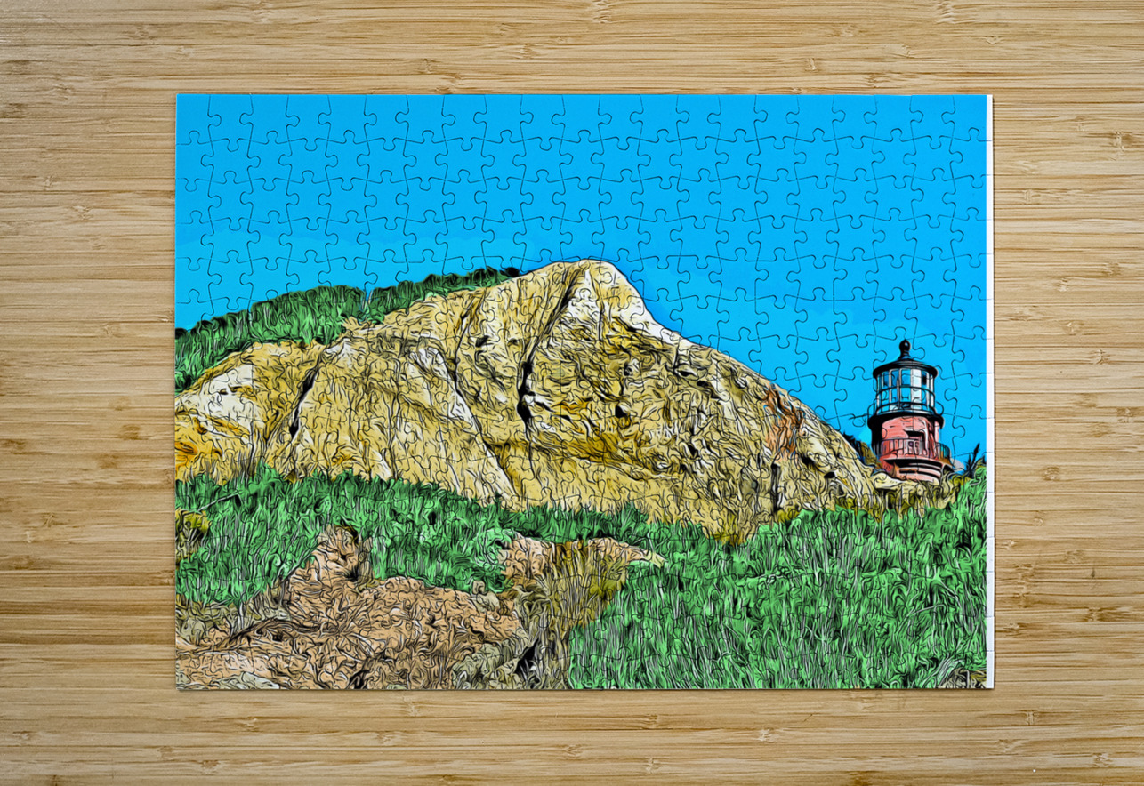 Gay Head Lighthouse Over Cliffs on Marthas Vineyard in Massachusetts - Illus. Allan Wood Puzzle printing