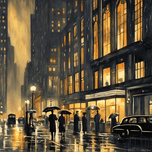 Vintage New York City at Night in the Rain | Row One | Over 12,000 Art Prints | Created using AI technology and remixed for aesthetics, this beautiful...[+]