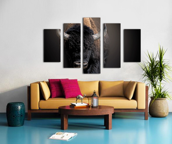 "The Business End" is a captivating piece that immediately commands attention with its portrayal of a bison in all its majestic glory. The artwork features this magnificent creature standing with an imposing presence, its large horns gracefully curving upwards. Masterful choices in texture and shading highlight the intricate details of its dense, dark fur, drawing the viewer's eye to its powerful, muscular build. This striking contrast against a deep, shadowy background serves to enhance the bison's formidable and rugged essence. The artwork is more than just a portrait; it's an exploration of the themes of strength and power. The title, "The Business End," cleverly hints at the animal's potential for dynamic movement and force, suggesting a moment of confrontation that viewers can almost feel. The unique composition, with its dark-on-dark tones, amplifies the sense of intensity and energy, making it seem as though the bison is charging straight towards the observer. This evocative work invites reflection on the primal beauty and grandeur of one of nature’s most resilient creatures.