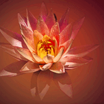 "Spa Lily" captivates the viewer with its serene and tranquil composition, a stunning photographic portrayal of a beautiful flower. The blossom is the focal point, showcasing its vibrant pink and orange petals that delicately unfurl in layers, creating a mesmerizing pattern. Each petal flows effortlessly from the radiant yellow and orange core, drawing the eye to the center of this exquisite piece. The backdrop of the artwork is a softly blurred, warm red gradient that evokes a sense of calm and relaxation, making it feel like an escape into an oasis of peace. The subtle reflection of the flower below adds depth and elegance, creating an almost ethereal quality that makes one feel enveloped by the beauty and tranquility that the piece exudes. Inspired by the soothing ambiance one finds in a spa, the image embodies a harmony that invites viewers to pause and immerse themselves in its calming aura. The unique interplay of colors and gentle gradients creates an atmosphere akin to a perfect retreat, making "Spa Lily" an ideal piece for spaces intended for reflection and relaxation.