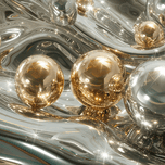 Gold and silver spheres on the smooth metallic waves Krit of Studio OMG Puzzle