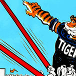 Aubie is getting ready to launch a dog from Georgia in this classic Phil Neel cartoon art. Derivative art © 2024 Row One Brand