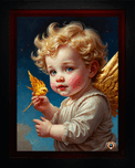 See Its A Golden Bird AI Concept Art by Xzendor7; says an adorable cherub flying in the clouds of a star lit evening sky.