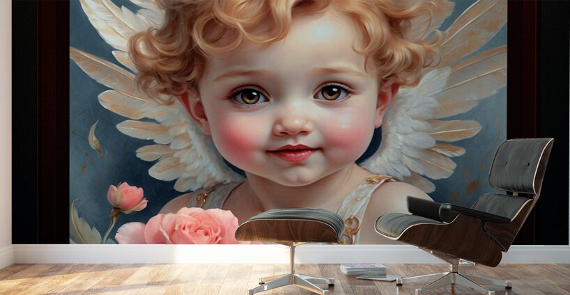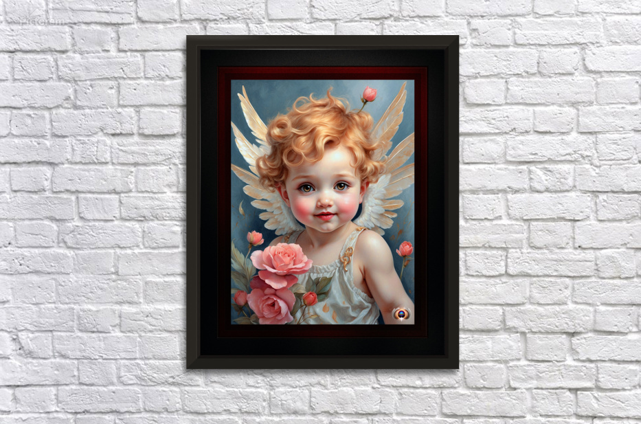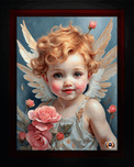 Roses For You AI Concept Art by Xzendor7; from an adorable smiling cherub with pink roses and rose buds all around.