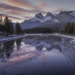 The Three Sisters Mountains, located near Canmore, Alberta, offer a breathtaking backdrop for the Bow River as it winds through the valley. At sunrise...[+]