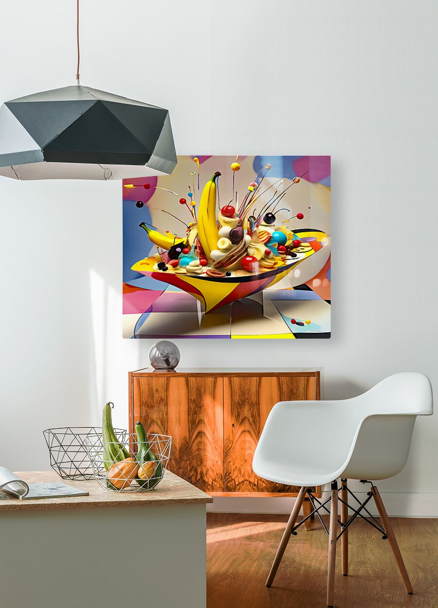 DALI / KANDINSKY INFLUENCE TEAMED UP WITH A I TO GENERATE THIS ONE OF A KIND BANANA SPLIT IN AN ABSTRACT BOAT BOWL.