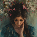 A painting depicting a woman with flowers adorning her hair.