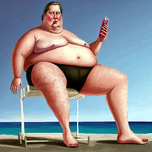 ABOUT THIS ARTWORK: RIDICULOUS ILLUSTRATION OF A MAN WITH A BIG BELLY ON THE BEACH