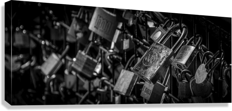 LOCKS ON THE PONT DES ARTS BRIDGE  PANORAMIC 2444 BLACK AND WHITE  Canvas Print