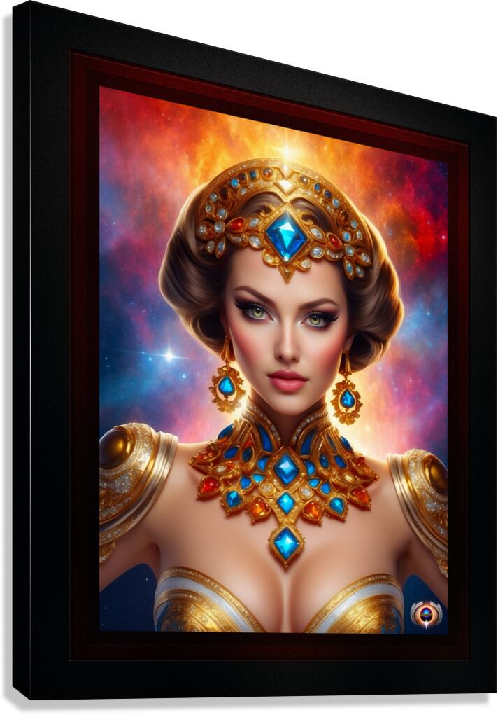 Get this artwork "The Galaxy Pin Up Girl Captivating AI Concept Art by Xzendor7" in a framed print.