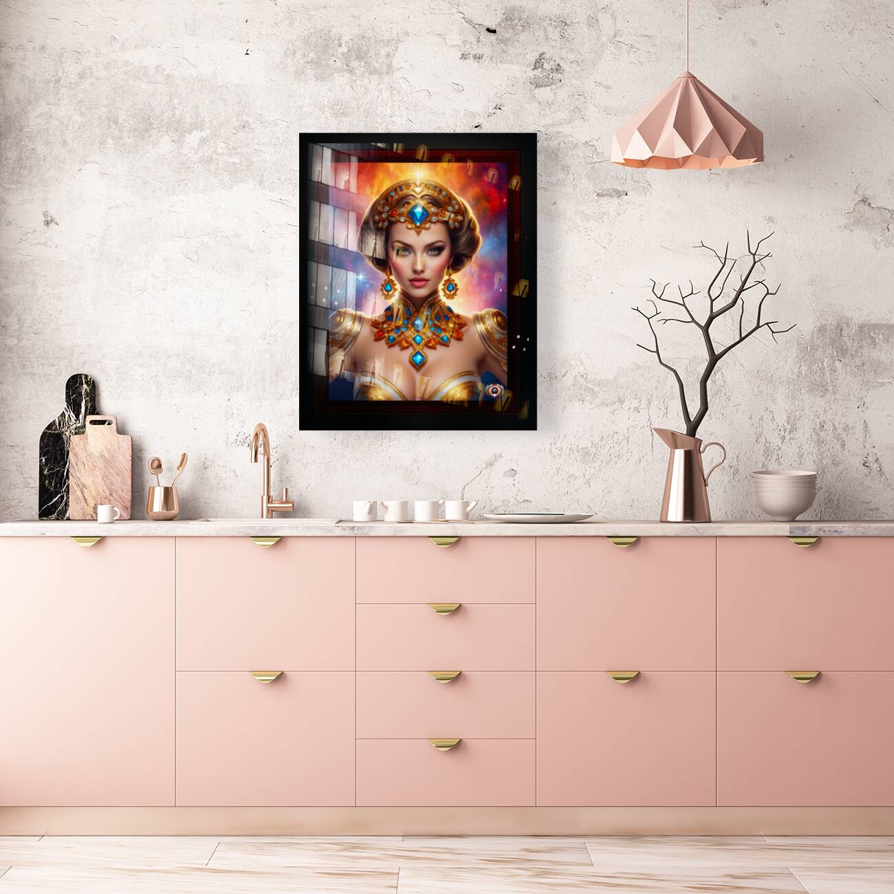 The Galaxy Pin Up Girl Captivating AI Concept Art by Xzendor7 Wall Decor Frame