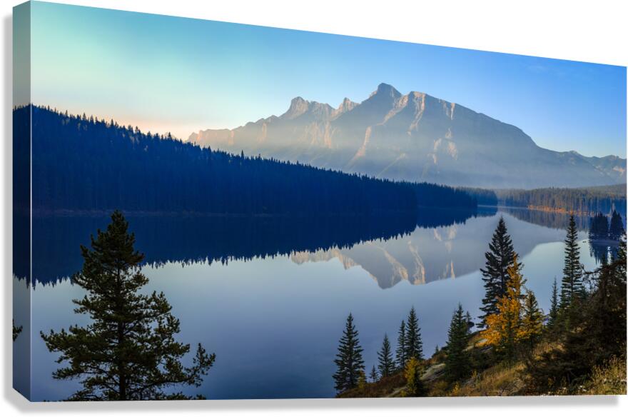 Tranquil Reflections: Two Jacks Lake in the Early Morning Canvas print