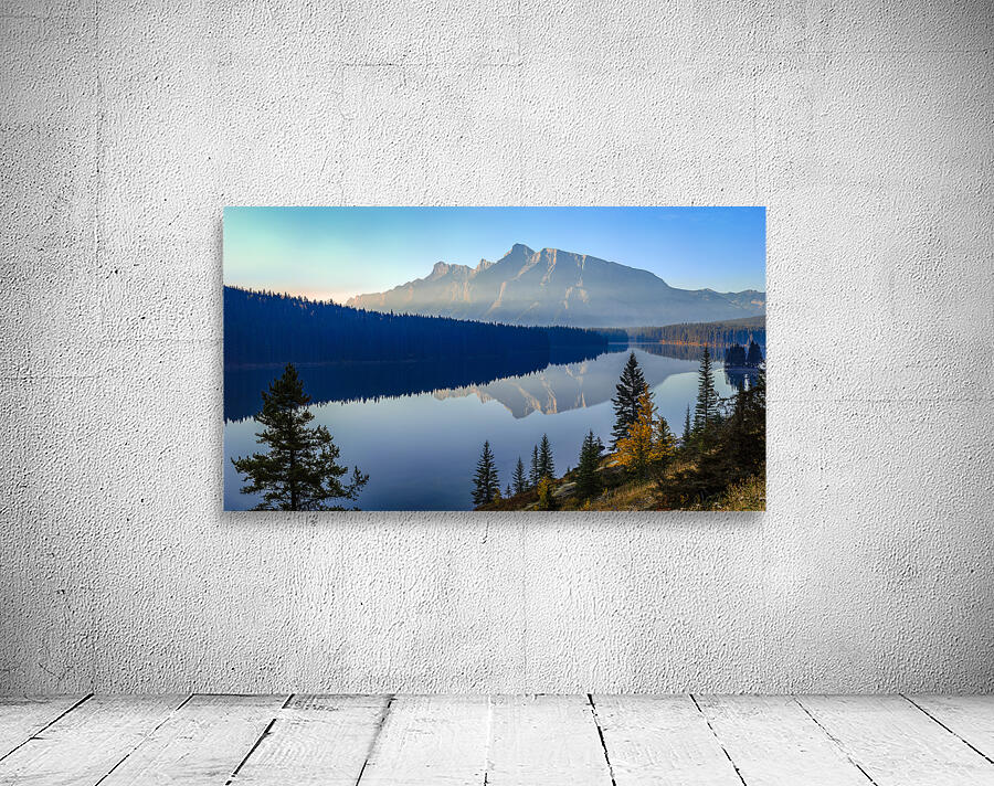 Tranquil Reflections: Two Jacks Lake in the Early Morning  Wood print