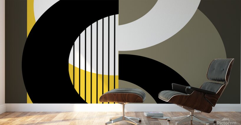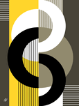 geometric abstract with vertical lines and rectangles inter connecting with half circles in bold color