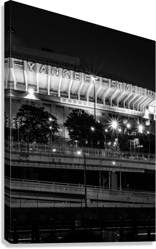 OLD YANKEE STADIUM AT NIGHT  VERTICAL 2939 BOMBER BLACK AND WHITE  Canvas Print
