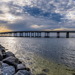 An evening view of the Destin Bridge and William T. Marler Bridges in Destin, Florida, United States. I was standing on a rock jetty on the edge of th...[+]