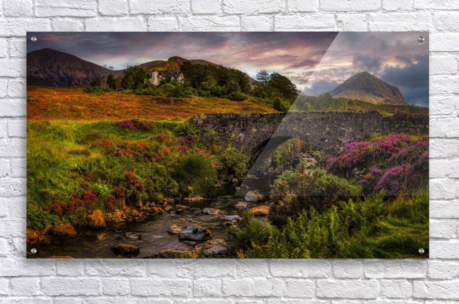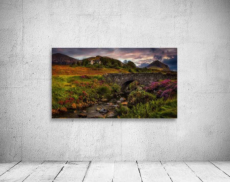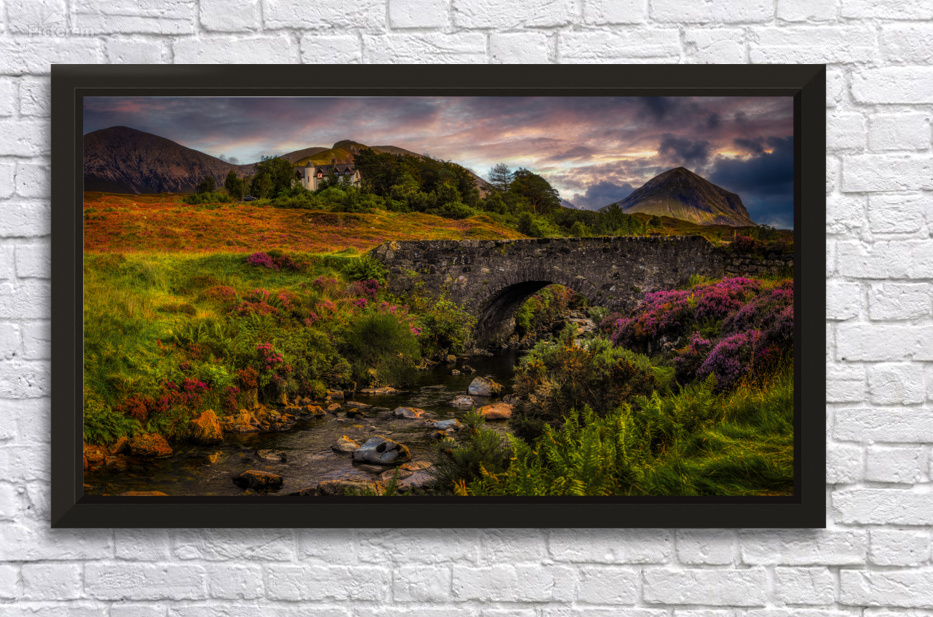 Enchanting Tranquility: Sligachan Old Bridge Amidst the Drama of Nature Wall Decor Frame