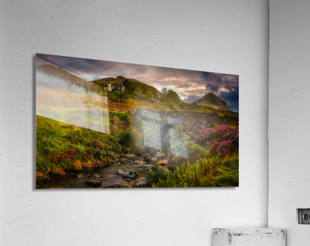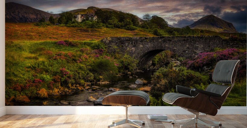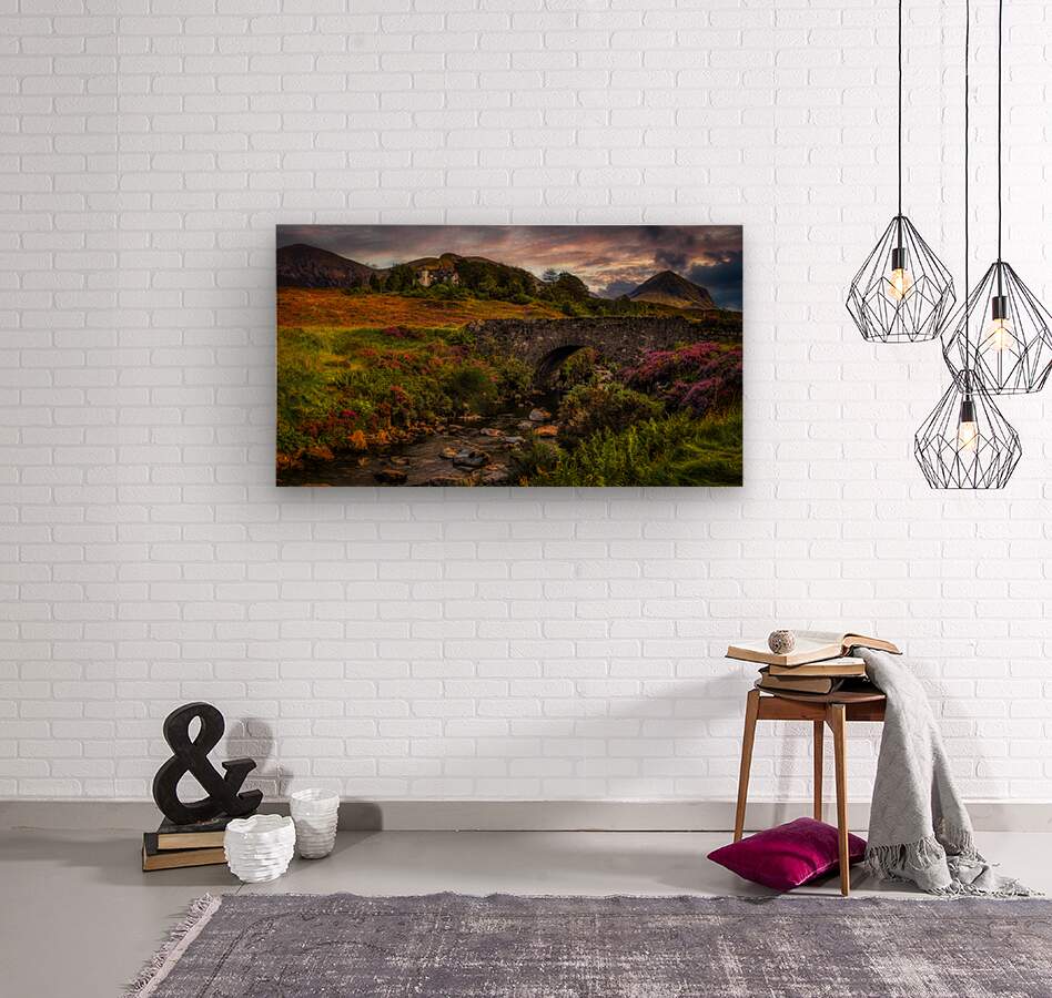 Enchanting Tranquility: Sligachan Old Bridge Amidst the Drama of Nature  Wood print