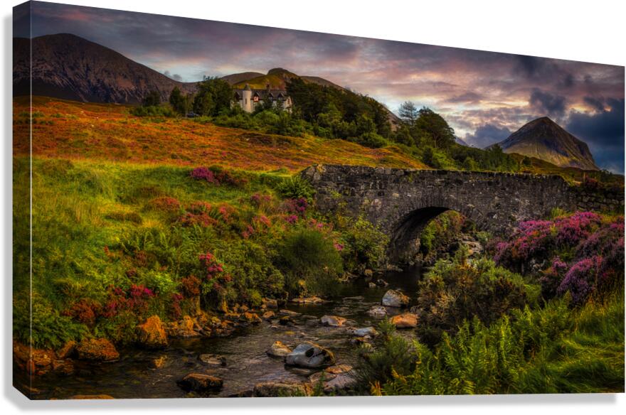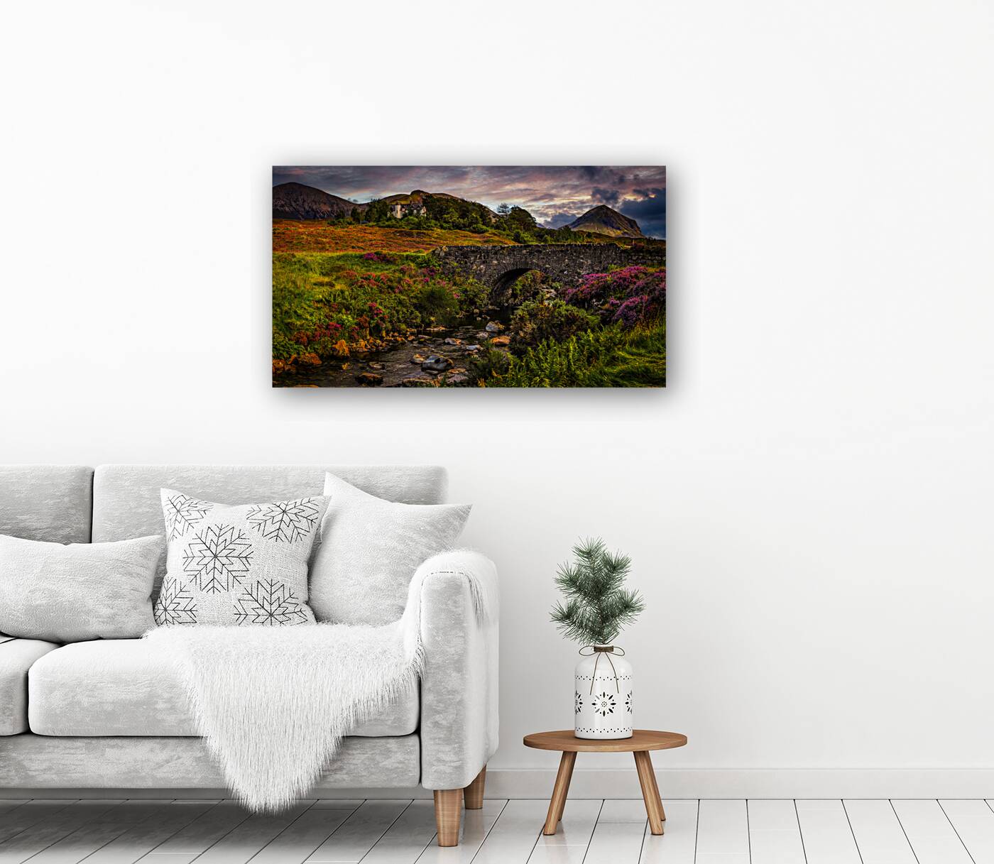 Enchanting Tranquility: Sligachan Old Bridge Amidst the Drama of Nature Canvas print