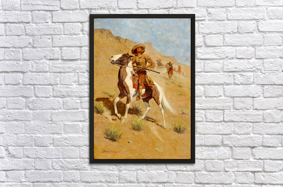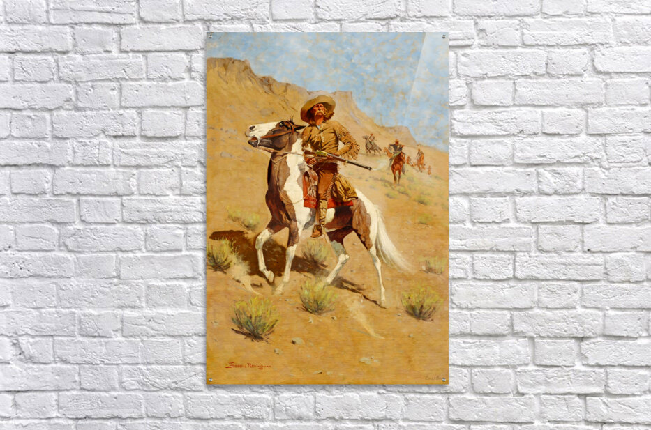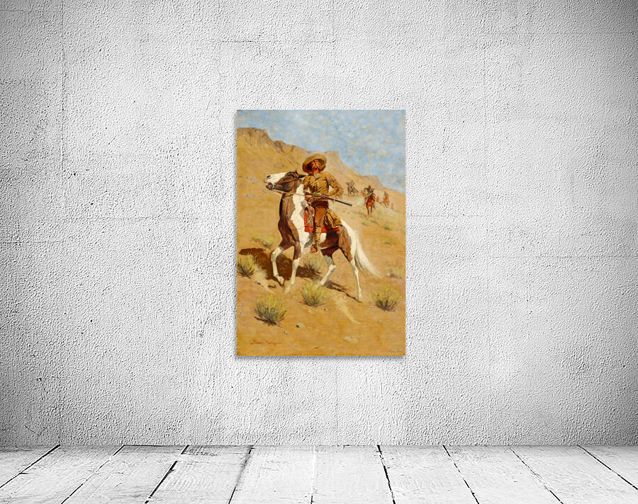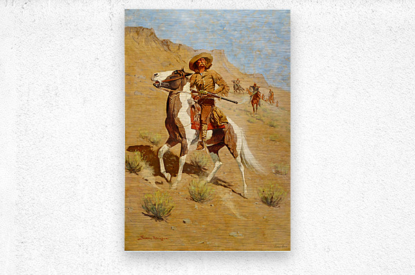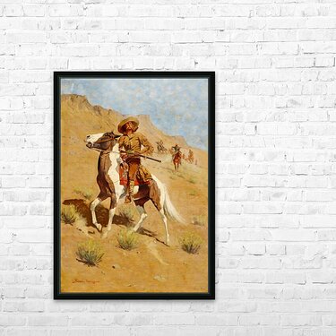 Frederic Remington's "The Scout" is a beautiful painting from 1902. This Old West artwork will look fantastic in your home or office. Digitally re...[+]
