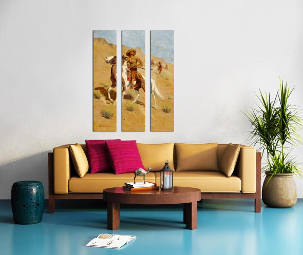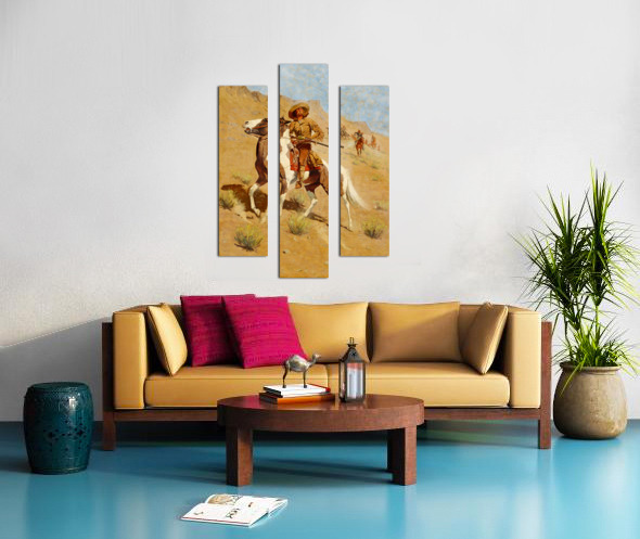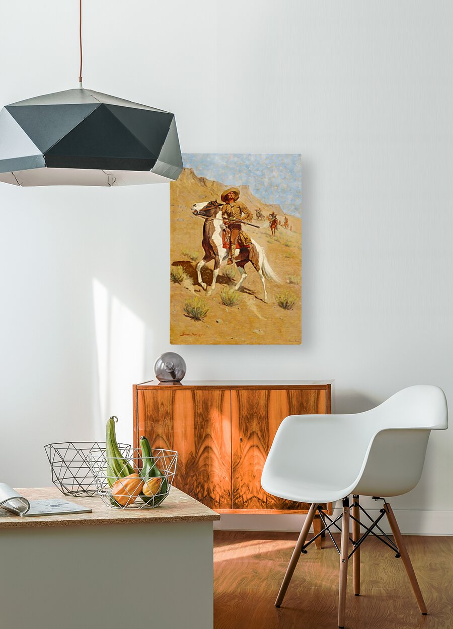 Frederic Remington's "The Scout" is a beautiful painting from 1902. This Old West artwork will look fantastic in your home or office. Digitally restored by Row One Brand for vibrant colors.