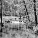 A black and white version of this beautiful spring season day along this wooded landscape scene with a waterfall. This is part of Dogwood Creek in Lam...[+]