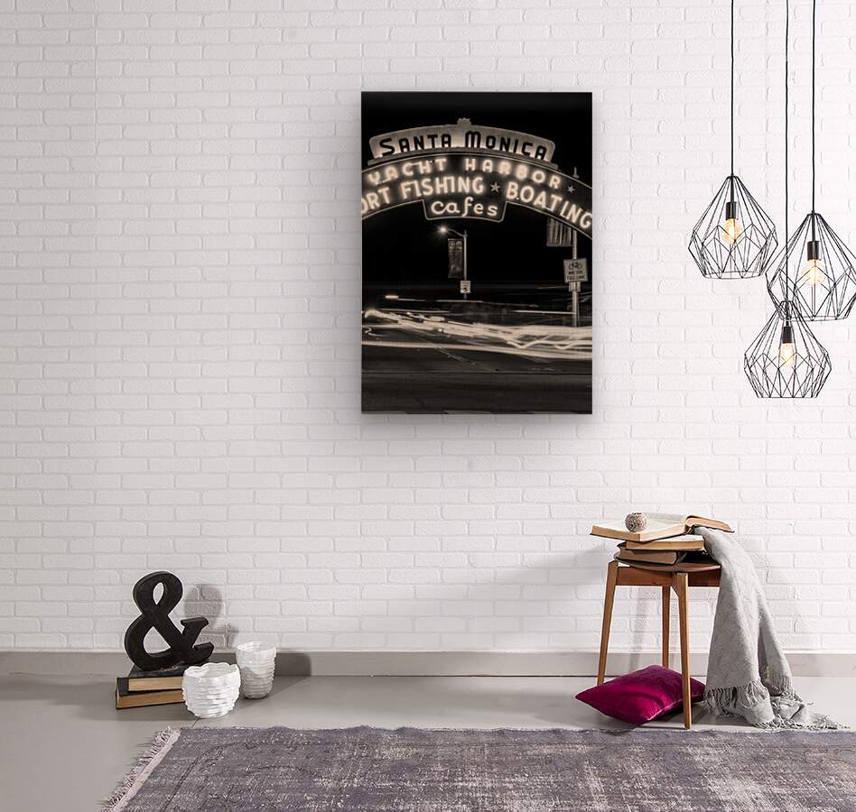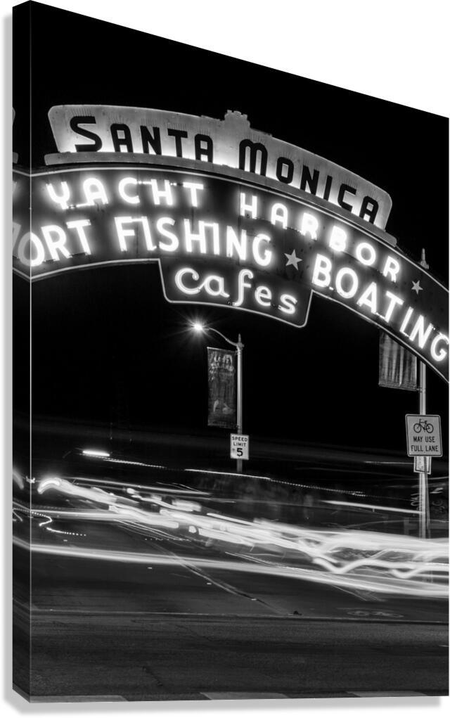 SANTA MONICA PIER AT NIGHT  VERTICAL 221 MONICA 1 BLACK AND WHITE  Canvas Print