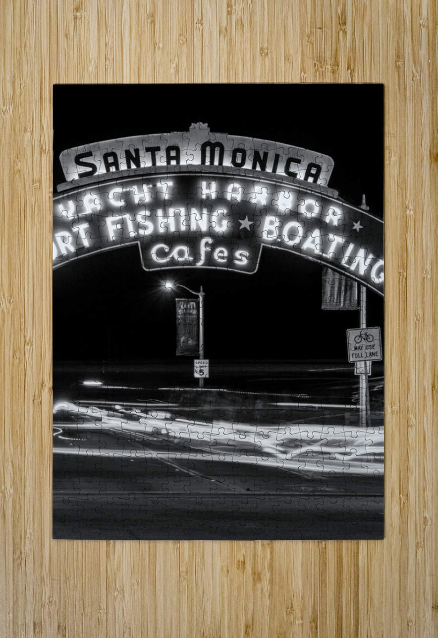 santa monica pier at night  vertical 221 Monica 1 Black And White Puzzle printing