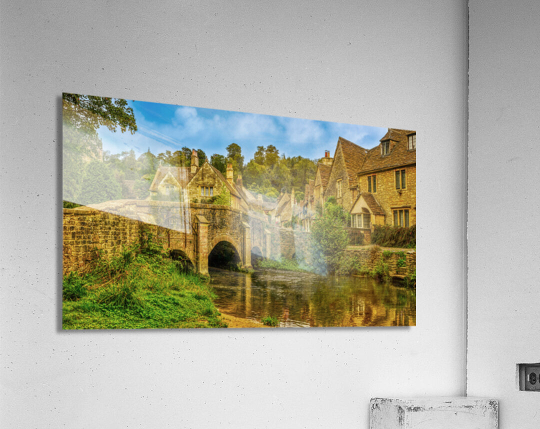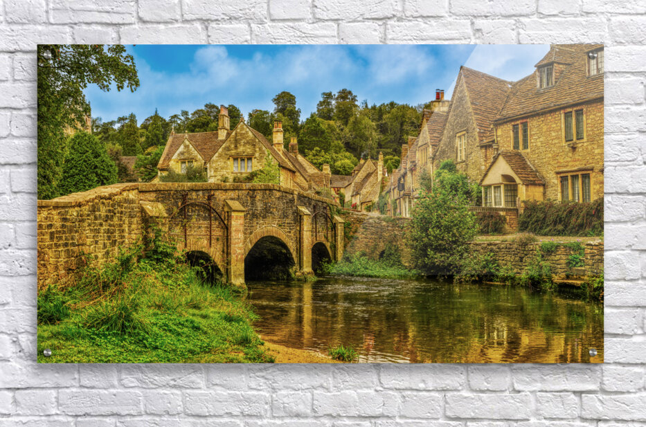 Get this artwork "Tranquil Charm: Riverside Glimpse of Castle Combe" in a framed print.